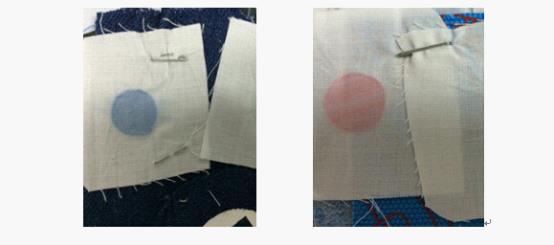 3.九成书包样品的摩擦色牢度较好。摩擦色牢度是考核书包在使用过程中,与接触的人体及衣物发生摩擦后是否会发生颜色变化的重要指标,也是消费者比较在意的项目,摩擦色牢度达不到标准要求,书包产品就会非常容易脱色,在使用过程中会把颜色转移到衣服上,既影响美观又影响使用。经测试,在标称执行标准为QB/T2858-2007的42款书包中,有5款样品的摩擦色牢度脱色较严重。图4是摩擦色牢度脱色示例。
