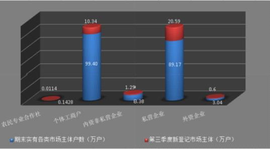图3 截止9月份全市各类市场主体的具体分布情况