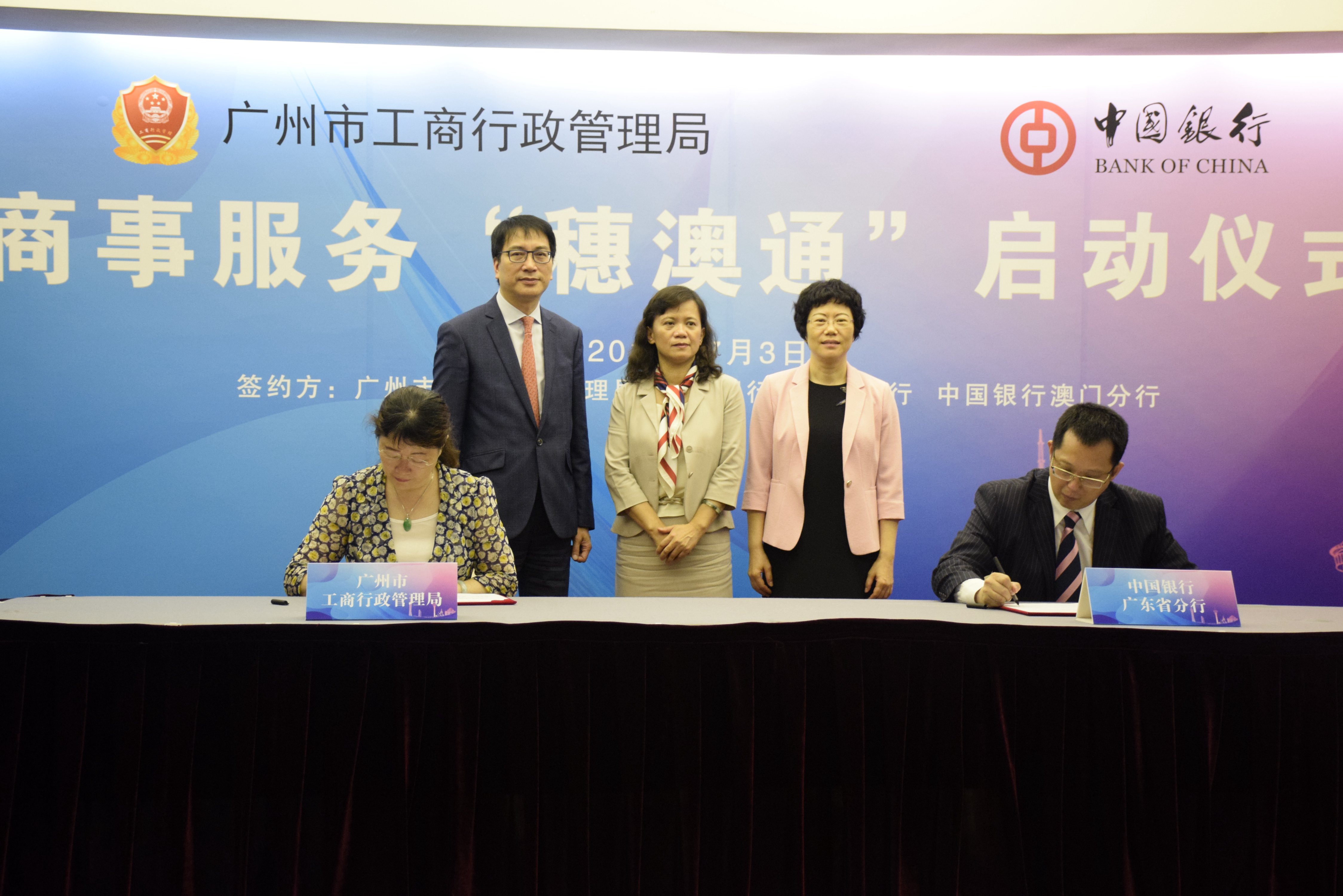 2018年7月3日,广州市工商行政管理局与中国银行股份有限公司广东省分行正式签署了《广州市工商行政管理局与中国银行股份有限公司广东省分行商事服务“穗澳通”合作协议》,这标志着广州市商事服务“穗澳通”正式启动。