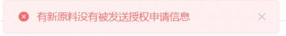 问:系统提示“有新原料没有被发送授权申请信息”,该怎么处理?