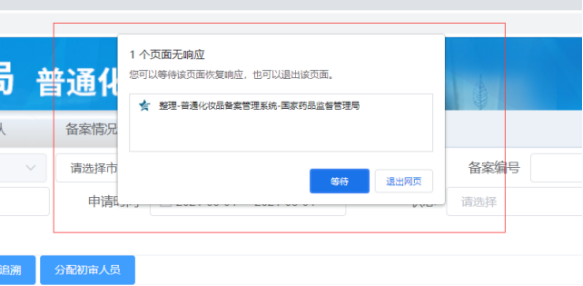 问:新系统备案操作过程中出现页面响应,是什么问题?